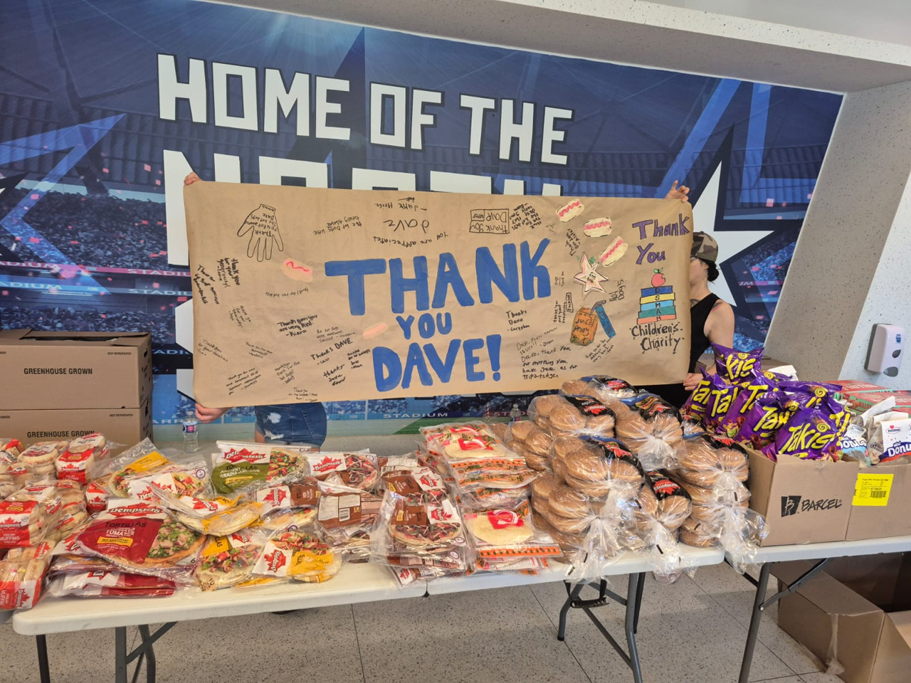 Providing T-shirts, hoodies, hats, sportswear etc. when supplies available.